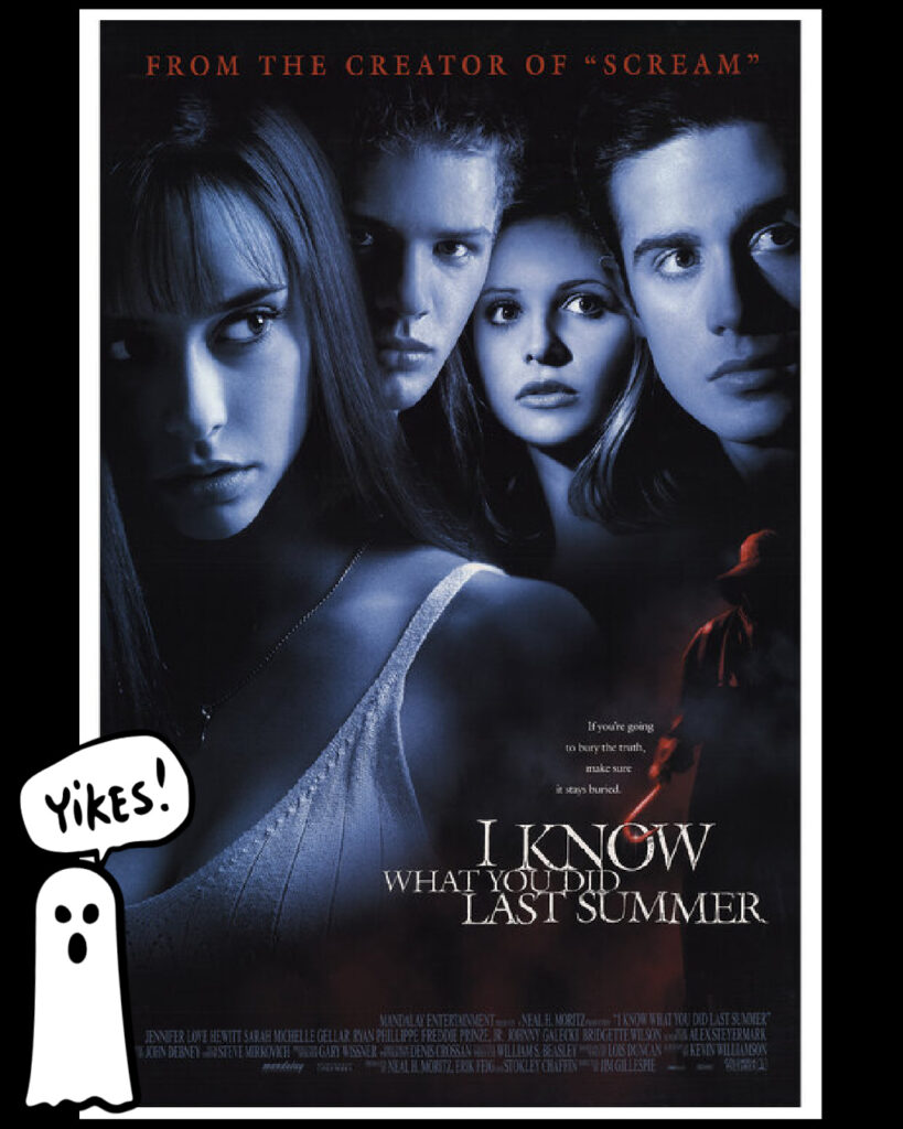 You’ve probably heard it said “Every hit has a hook!” That old adage is as true for movies as it is for music and perhaps never truer than with this next frightening film and all those that followed after in the terrifying franchise. I want to take you all the way to 1997 for the very first installment of I KNOW WHAT YOU DID LAST SUMMER. It’s a simple story really, four high school friends take a nighttime joy ride along the coast of their seaside town, but then – a tragic accident takes place. That’s when things get complicated and what happens next sets into motion a cinematic spiral of epic proportions as stars Jennifer Love Hewitt, Sara Michelle Gellar, Freddie Prince Jr. and Ryan Phillippe must live with the consequences of the decision they made on that dark night. Live and try to stay alive now that they’re being stalked by a vengeful hook-wielding maniac. I told you there’d be a hook. Fair to say there’s a whole lotta screaming and a truly killer soundtrack too. In fact when Columbia Records released “I Know What You Did Last Summer: The Album” they could only fit 15 of the 29 songs featured in the film. Fortunately for Canadian rockers, Our Lady Peace their tune “Clumbsy” was among them, as was”D.U.I.” by The Offspring and Kula Shaker’s “Hush.” A song which fans of the franchise will know was covered by American indie pop band The Marias for the 2025 version of I KNOW WHAT YOU DID LAST SUMMER – which for the record was not a remake – no matter what the title might imply. You can watch the original I KNOW WHAT YOU DID LAST SUMMER streaming now on Netflix.