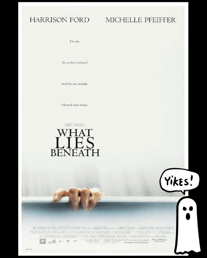 At this point I feel it imperative to reassert the fact that my favourite genre of film is the RomCom. An affinity that, while on full display in my first feature, is nowhere to be found in this list. I note it now so you’ll know I went into this next film with high hopes that I – at the very least – could relish in the ‘romantic’ side of the movie. I mean it stars Harrison Ford and Michelle Pfeiffer, but – without giving away too much of the plot – WHAT LIES BENEATH drowned those hopes in pretty fast order. I guess forgoing Ford and Pfeiffer on the movie poster should have prepared me for more nightmare than dreamy and yet – I was nowhere near ready for what came at me in this twisty flick. You see, Ford plays a University Research Scientist named Norman Spencer who’s wife Claire, played by Phieffer, starts to feel a ‘presence’ in their home, and that haunting escalates until the ghost gets its revenge. Full transparency – I own in this movie on DVD and I jump EVERYTIME!!! Oh, it’s that good. Robert Zemeckis directs this 2000 fantasy thriller and I’m gonna tell ya it’ll keep you on the edge of your seat from start to finish. Mega award-winning composer, Alan Silvestri created the gripping score for WHAT LIES BENEATH, and Harrison Ford and Michelle Phieffer were phenomenal in their roles. No surprise to learn they were Zemeckis’ first and only choices to star in the scary feature. Oh, and here’s one more frightening fact – the beautiful house depicted in the film was used for only the day scenes and was torn down immediately after filming because it didn’t meet local building codes. The rooms were duplicated on an LA sound stage for night scenes. And get this, there were 5 versions of the bathroom set created so as to ensure the thrills were thoroughly covered from every angle. You’ll have to watch it for yourself to see why…eeeek! WHAT LIES BENEATH is available to rent/buy through apple movies.