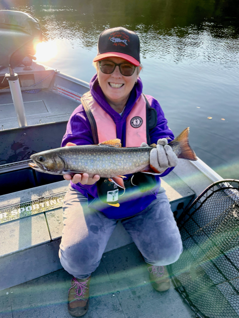 She brought the Brookie to net – a nice 17.25 inch fish – and I told her it was the first ever for me from the World Record hole!!