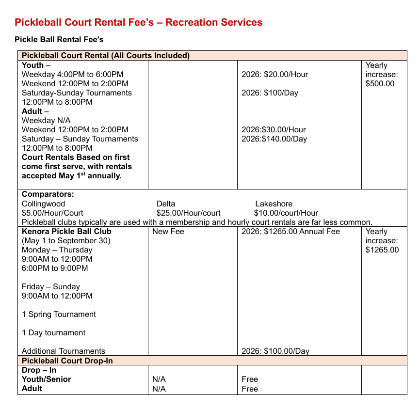 General manager of Recreation and Culture Andrew Smith says the Kenora Pickleball club has agreed to pay $55 dollars a week for the right to play on the courts.