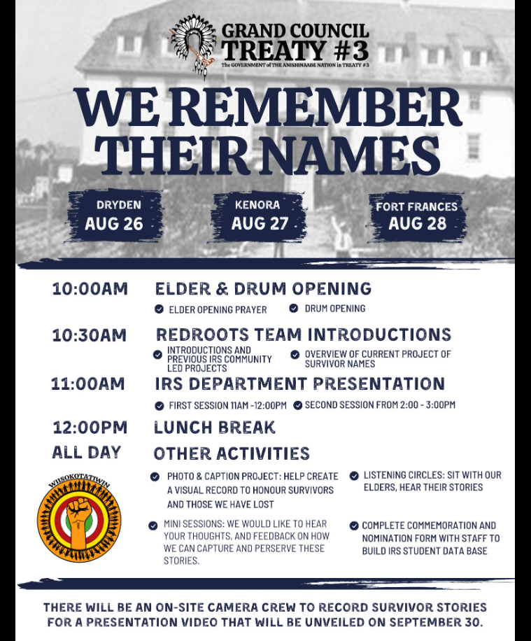 A gathering for truth, remembering, and healing. Orange Shirt Day is coming up on September 30th, and this event is to honour the many children whose names were lost, misspelled, or left out of records entirely. Being held at Clarion Lakeside Inn.