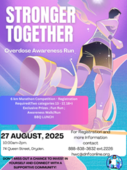 Join us on August 27th, 2025, for the Overdose Awareness Run and other programs, followed by a BBQ lunch. This event is part of the international campaign to raise awareness about overdose, reduce stigma around substance use, and remember the lives lost. It also aims to encourage open conversations and community healing.
