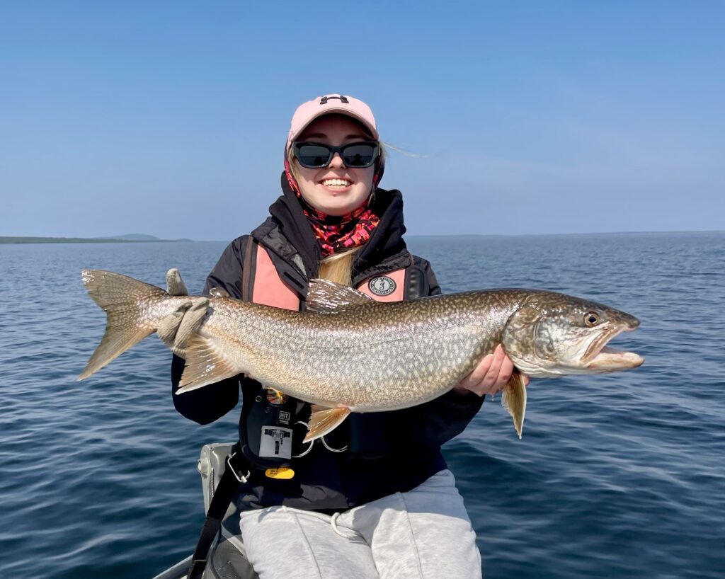 Day 1 of the trip was devoted to exorcising her Lake Trout demons, and Maddi’s first Laker checked in at 34 inches / 12 lbs. establishing a new Personal Best… but she wasn’t done there!