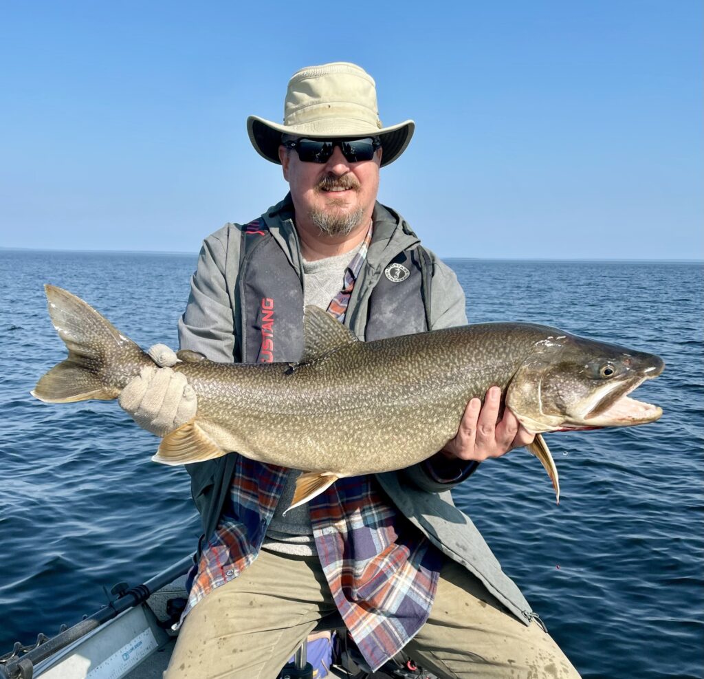 The hopes of casting for large Lake Trout on shallow reefs with light tackle were quickly replaced by the need for down-riggers to be able to make some fishy connections.