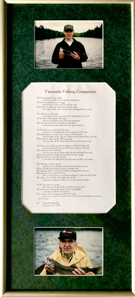That trip even inspired my son to write a poem about his favourite fishing companion… his Grampa. I was so proud, I had the poem printed and framed with a couple of pictures of some glacial relic Lakers from a small inland lake.